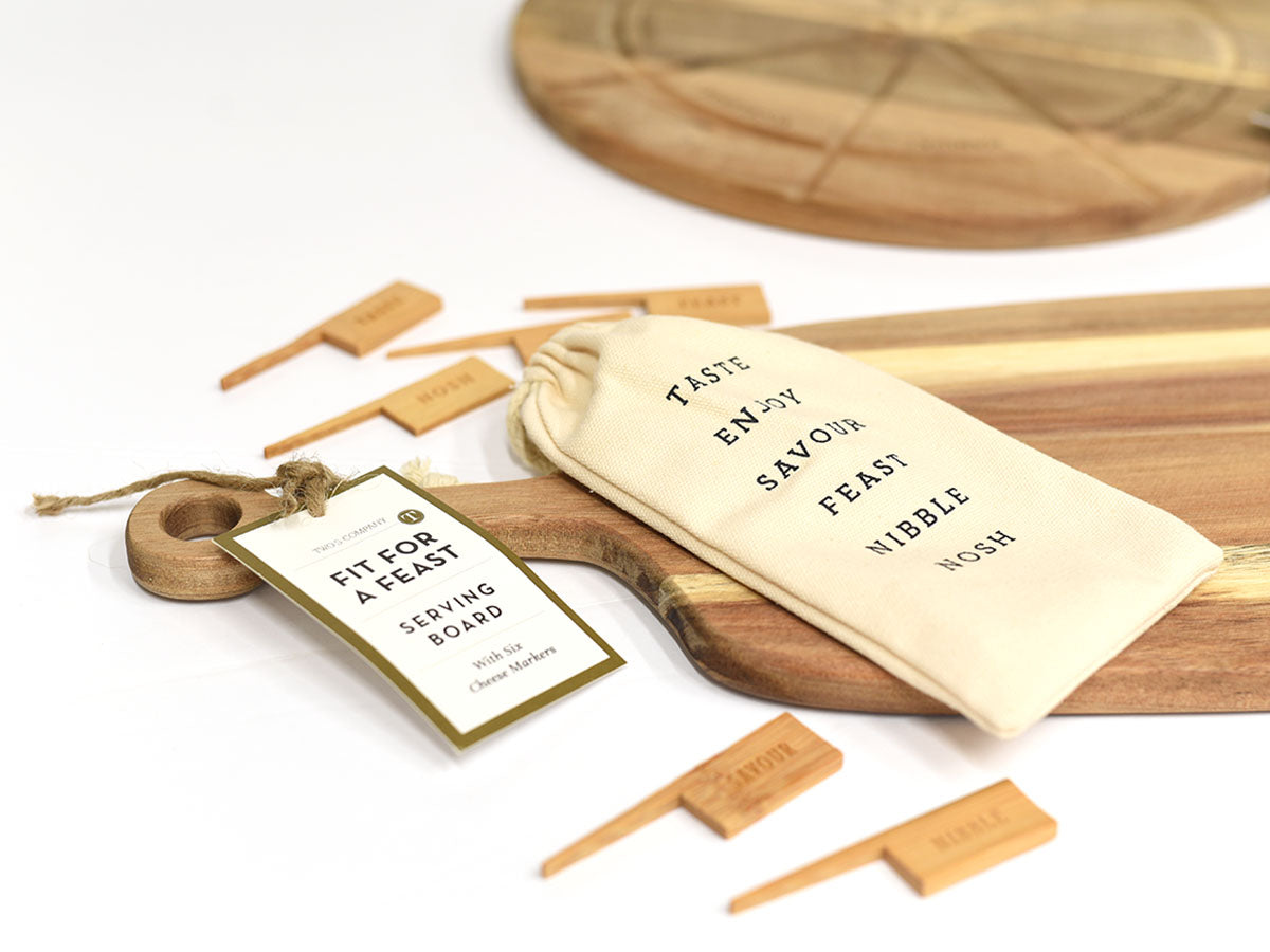 Comes with 6 cheese markers with embossed sayings. Made From Solid 100% Natural Acacia Wood.